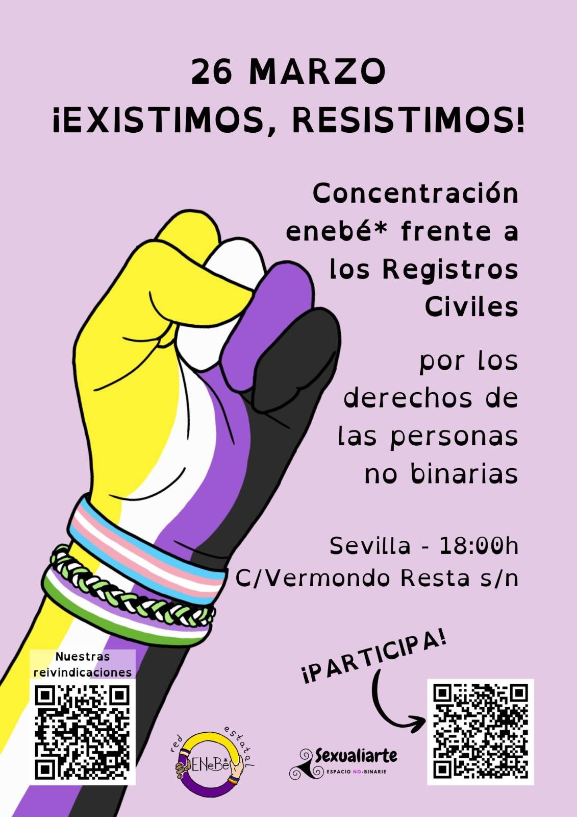 El jueves 26 de marzo, en el marco del 31 de marzo, Día de la Visibilidad Trans, queremos protestar ante las oficinas de los Registros Civiles para exigir que el Estado español cumpla con sus obligaciones con los Derechos Humanos de acuerdo con los estándares internacionales.
